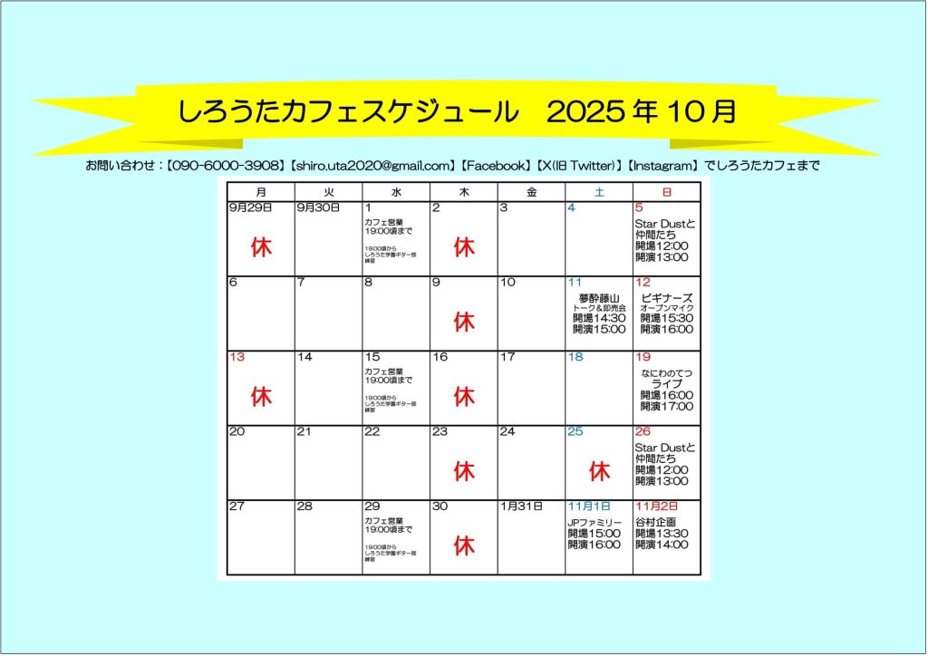 しろうたカフェ2025年6月のスケジュール&今後の予定です。(一部修正)