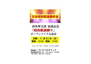 2025年6月29日(日)ビギナーズオープンマイク 2025 6/02 音楽ライブ 2025年6月2日 6月は、ビギナーズオープンマイクを2回開催します。 面白い企画をと思ったのですが、思案中。何か面白い企画があれば、ぜひご連絡ください。 音楽ライブ よかったらシェアしてね! URLをコピーしました! URLをコピーしました! 2025年7月5日 みんなに知って欲しい「郡内小山田のおはなし Vol.2」夢酔藤山 2025年6月28日 みんなに知って欲しい「郡内小山田のおはなし Vol.1」夢酔藤山 この記事を書いた人 shirouta 関連記事 2025年11月2日㈰谷村企画【夜とぺロケと音楽と】 2025年11月2日 2025年11月9日㈰ Star☆Dust企画「秋の妖精たちの宴!」 2025年11月2日 2025年11月23日(日)日本昭和歌謡愛好会 2025年11月2日 2025年10月5日㈰ Star☆Dust企画「秋の妖精たちはやってきたのか?」 2025年10月5日 2025年10月12日㈰「ビギナーズオープンマイク」出演者募集 2025年10月5日 2025/10/19㈰藤縄てつや(なにわのてつ)ライブのお知らせ 2025年10月5日 2025年10月26日㈰ Star☆Dust企画「秋の妖精たちがうたう!」 2025年10月5日 2025年11/1(土)JP Family しろうたカフェLIVE 2025年10月5日 コメント コメントする コメントをキャンセルコメント ※ 名前 ※ メール ※ サイト 次回のコメントで使用するためブラウザーに自分の名前、メールアドレス、サイトを保存する。